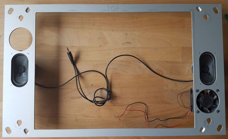 Es fehlt nur die Unterputzdose, die es aber auch noch neu zu kaufen gibt. Halterahmen und Blende aus massivem Alu und Glas sind dabei.