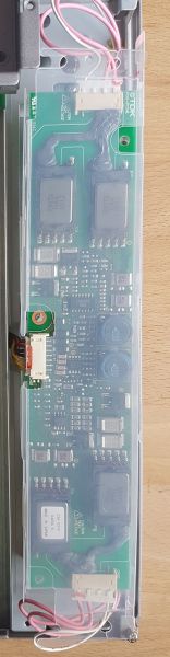 Die Displaybeleuchtung ist kaputt (HV Treiber der Hintergrundbeleuchtung). Das Bauteil kann noch neu als Ersatzteil gekauft werden.