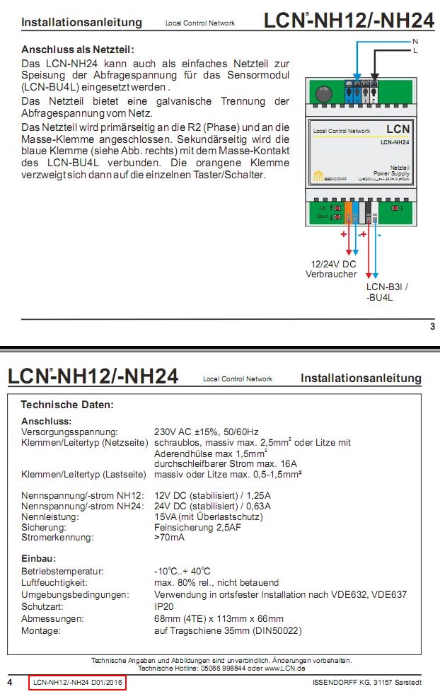 Der Waschzettel im aktuellen download (http://lcn.de/produkte/install-lcn-nh12-nh24.pdf) ist die Version 'LCN-NH12/-NH24 D06/2015'. Da stehen die Kontakte (die auch ich nicht anders kenne) nicht drin.