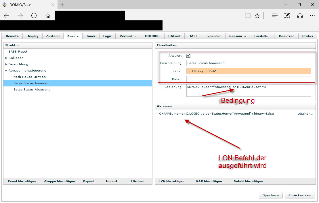 Erkennt das Domiq das Tastenevent vom sendenden Modul und meine Bedingung der MEM Variablen ist TRUE, dann führe ich das entsprechende LCN Kommando aus. Bild 2 Grüße LCNNoob