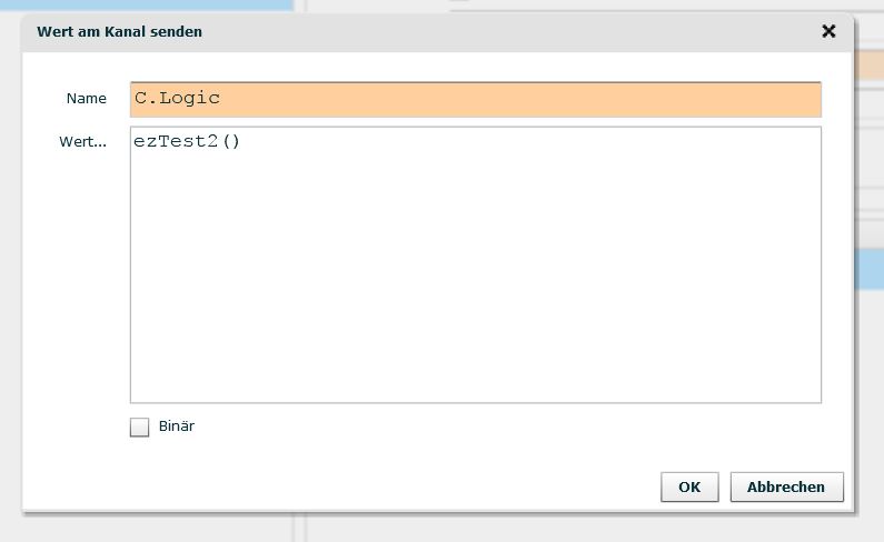 CHANNEL name=C.Logic value=ezTest2() binary=false definiert. Die entsprechende Funktion habe ich in Logic definiert.