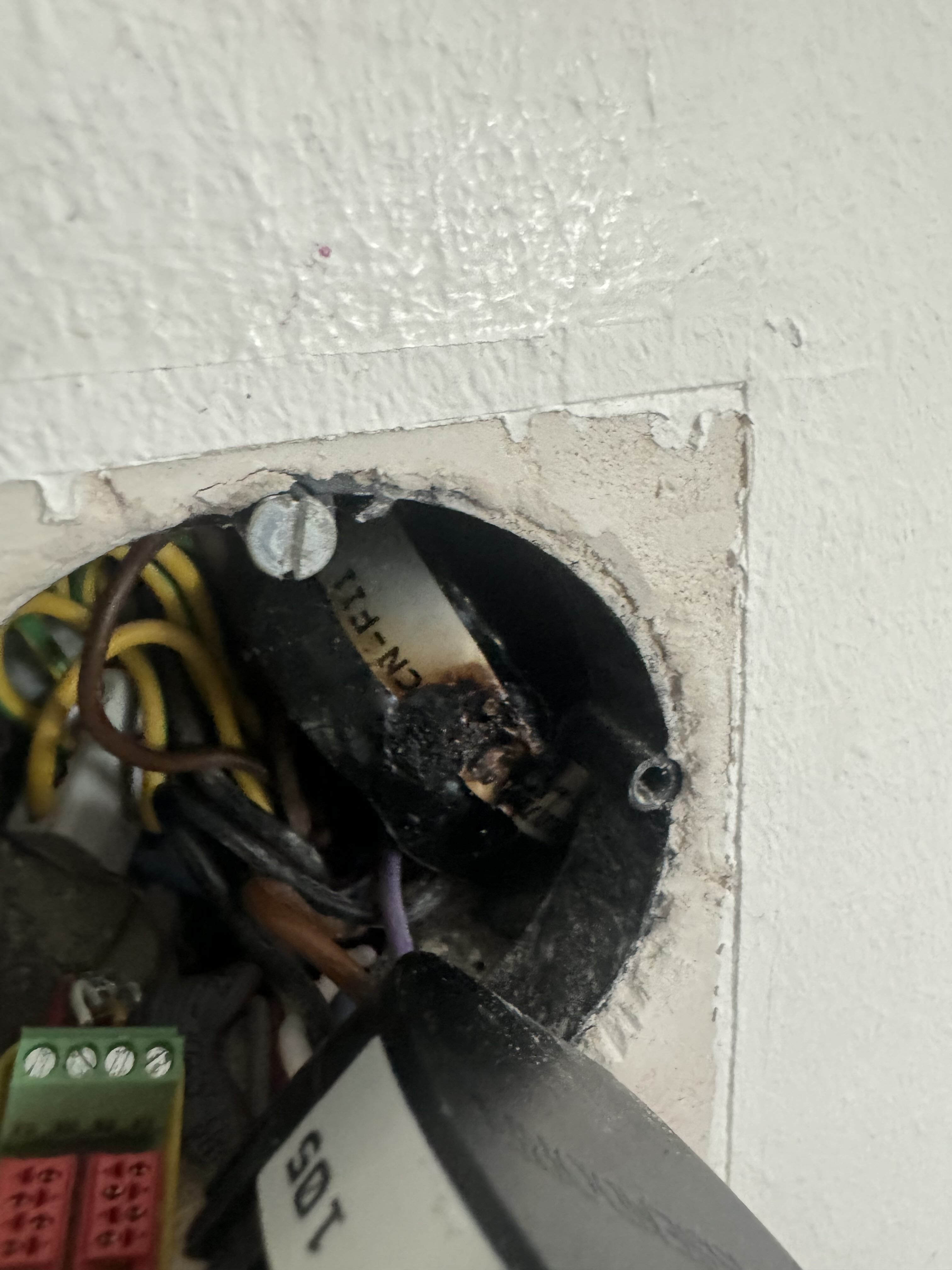 Am Nachmittag habe ich dann durch Zufall einen leicht verschmorten Geruch wahrgenommen und meine Nase hat mich an das Modul geführt, dass auch die Küchenbeleuchtung steuert. Bin dann immer weiter vorgedrungen - einen Katastrophe was da bei uns in die Unterputzdosen gequetscht wurde - und habe schließlich eine FI1 Gesichter, der vollkommen verschmort ist.