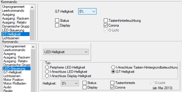 Man sieht im Sreenshot von Thomas schon 'mehr' Kommandos unter "GT-Helligkeit" - das kann auch an der Pro-Version liegen. Einige Corona-Lichter lassen sich auch (nur) über direkte LED-Kommandos (aus)schalten.