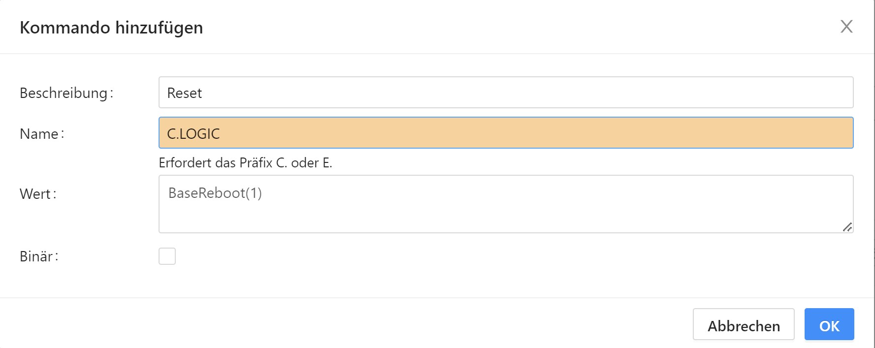 command ("C.HTTP.get=http://<user>:<password>@192.xxx.xxx.xxx:<portofbase>/call/reboot")