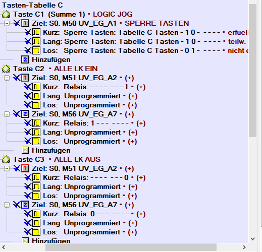 Anbei (siehe Anhänge) die damalige Programmierung im LCN in der ich mittels LED und Logik-Funktion Tasten die ich über einen Schalter betätige sperre oder entsperre je nach EIN-Zustand des Relais. Also normalerweise nichts Großes...