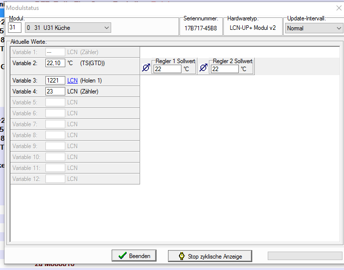 Im Modul habe ich die Variable 1 als Zähler eingerichtet: