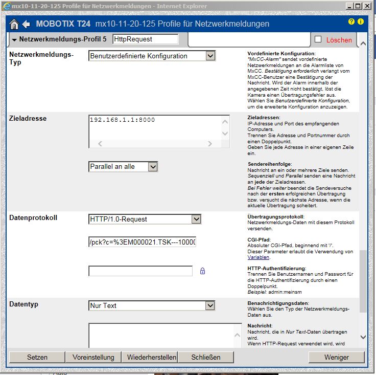 Also der Mobotix eigene Test der Meldung war erfolgreich, LinHK reagiert aber nicht darauf.