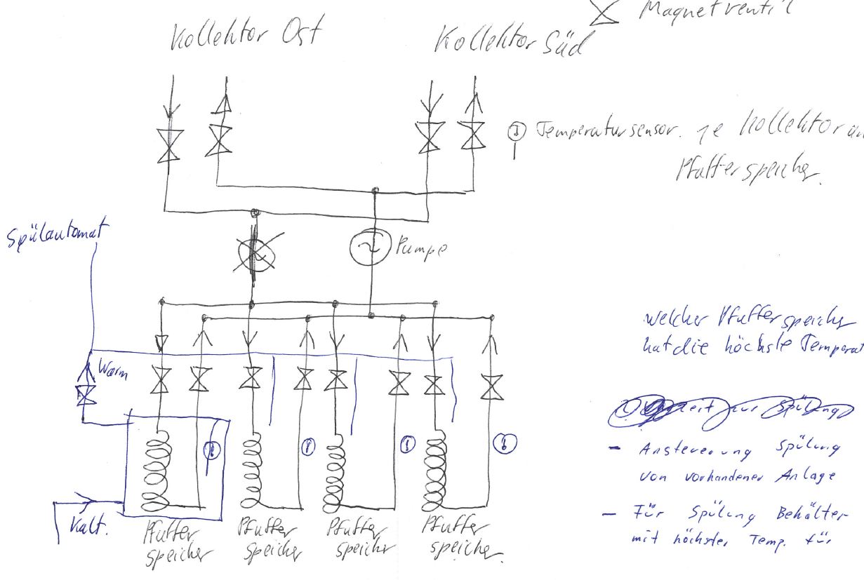 Damit sollen 4x 500Liter Pufferspeicher geheizt werden, die bei erreichen von 65 Crad soll nach einander der nächste Speicher geheizt werden.