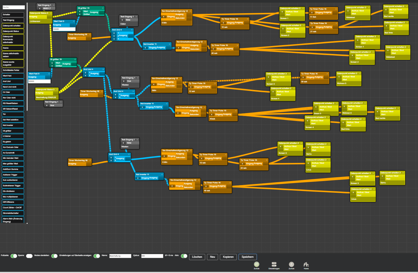 Aber einmal die Schnittstellen und die Datenpunkte in der Visu angelegt und der Kunde ist dann in der Lage, auch selber einfache Programmierungen zu machen ohne dass er was zerschießen kann. Eine kleine Einweisung genügt da in der Regel.